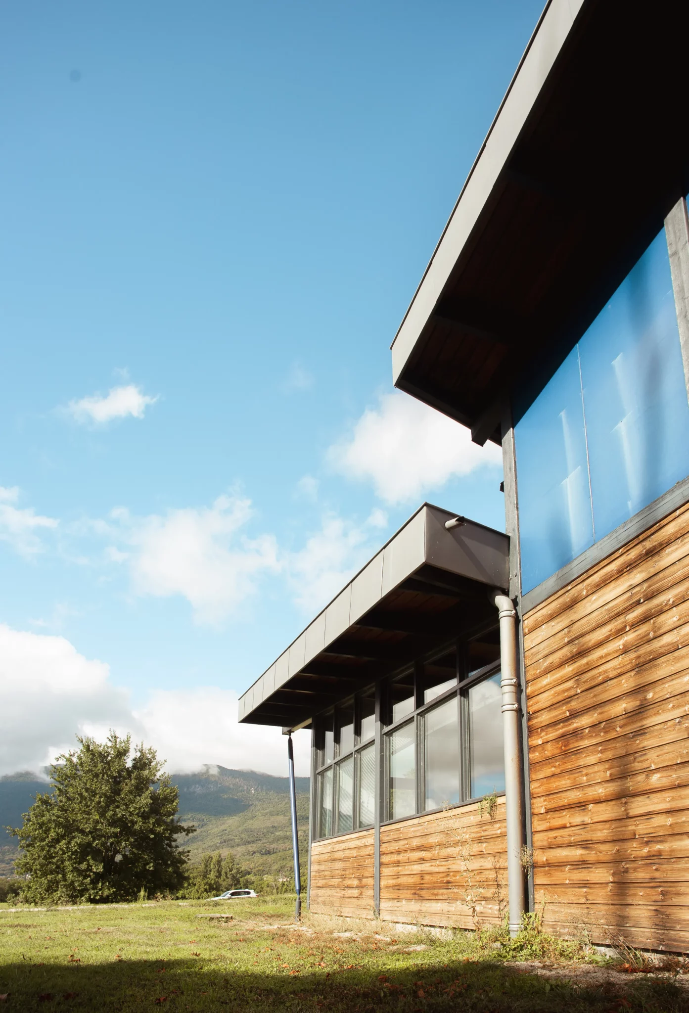 En 2001, l’agence quitte Challex pour s’installer dans la zone d’activité de Péron, sur une parcelle visible depuis la voie rapide. Cette situation stratégique devient l’occasion de concevoir un bâtiment contemporain, pensé comme une vitrine de notre manière de travailler et de notre approche architecturale.