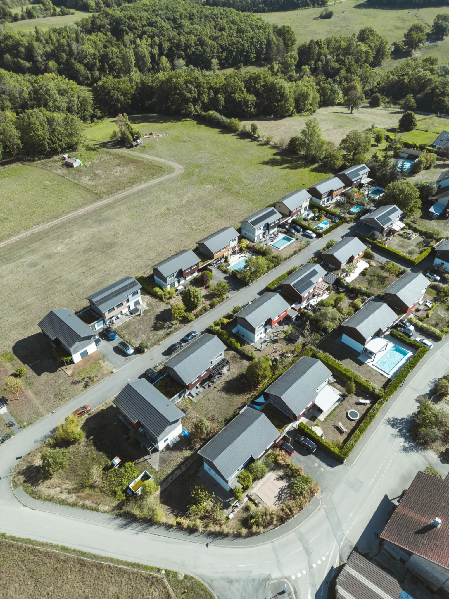 Située à proximité de la montagne, la résidence s’inscrit dans une campagne paisible où les maisons trouvent naturellement leur place. Un parc aménagé au cœur du lotissement complète l’ensemble et crée un espace commun dédié aux rencontres, aux jeux et à la vie de quartier.