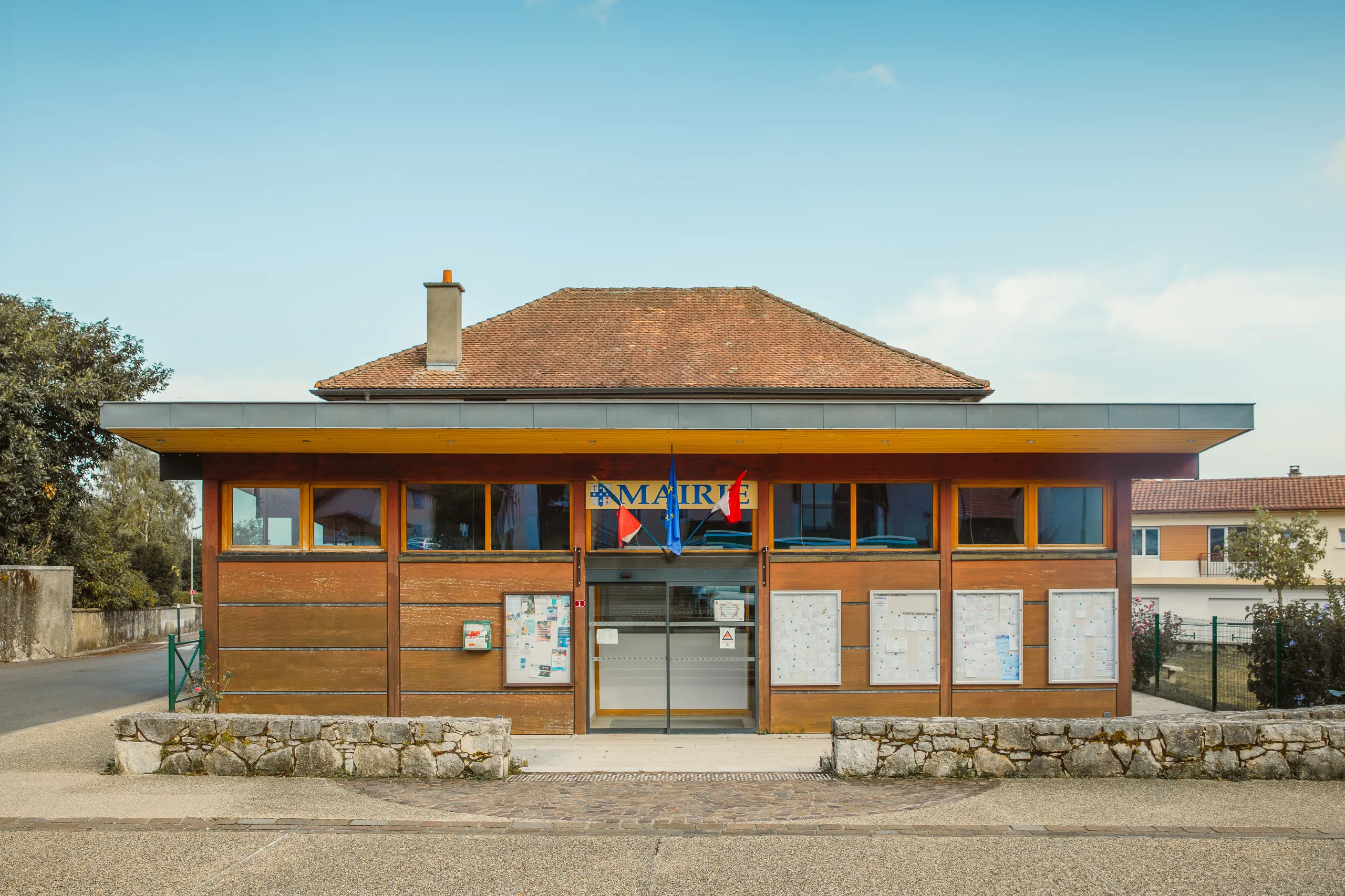 La rénovation de la mairie de Péron associe le charme d’une ancienne bâtisse patrimoniale en pierre à une extension contemporaine qui crée une nouvelle façade principale ouverte sur deux parvis. Situé au cœur du village, à proximité immédiate de l’église, le projet propose un bâtiment de plein pied en ossature bois, moderne et rationnel, où le rythme de la structure participe à la composition de la façade.